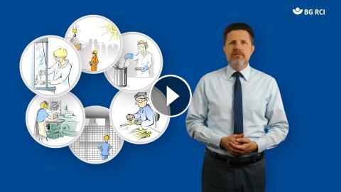 Im Film wird der Hautschutz anhand verschiedener Hautgefährdungen thematisiert.