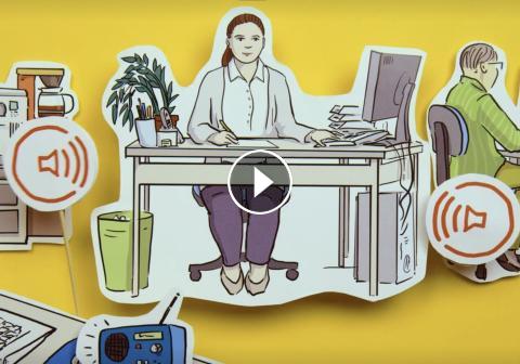Im Clip werden die Lärmschutzmaßnahmen im Büro gut verständlich erklärt.