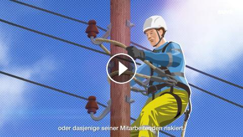 Laut Unfallstatistik verunfallen bei Arbeiten an Freileitungen verhältnismässig viele Menschen. Manche darunter so schwer, dass sie bleibende Gesundheitsschäden davontragen. Aus diesem Grund hat die SUVA sieben spezifische lebenswichtige Regeln erarbeitet.
